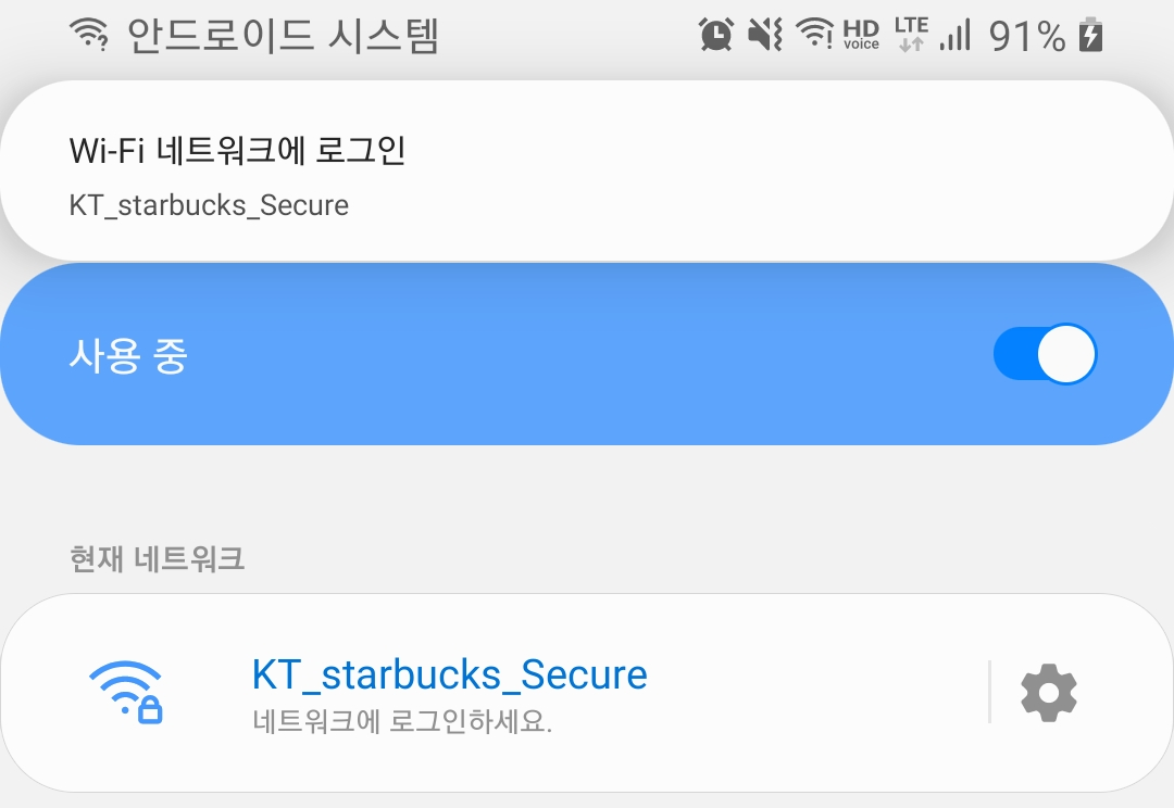 KT_starbucks, KT_starbucks_secure 네트워크 명칭은 동일하고 사용방법도 동일합니다.